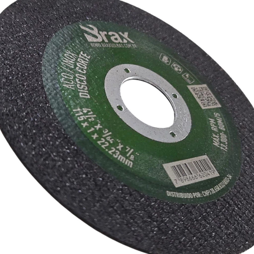 Disco de Corte Brax 4.1/2" x 1.0 x 22.23mm – Aço Carbono e Inox (Caixa c/ 100 Unidades) – 683